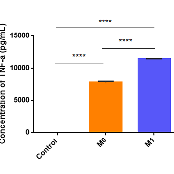 巨噬细胞是一类位于外周血、炎症组织中的白细胞,属于免疫细胞中单核细胞类群,主要通过吞噬细菌、死亡细胞或细胞残片参与非特异性免疫调节,巨噬细胞将信号传递给其他淋巴细胞及其他免疫细胞参与特异性免疫调调节。巨噬细胞分为M1和M2两种亚群,分别分泌促炎症因子和抗炎症因子。常使用RAW264.7、THP-1、U937 等细胞系进行巨噬细胞研究,通过不同诱导因子诱导分化为M1或M2巨噬细胞。