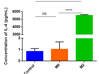 2)M2型巨噬细胞分泌高水平的抗炎细胞因子(IL-4、IL-13)