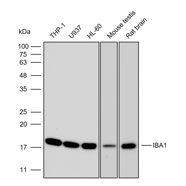 IBA1蛋白质的标准序列含有147个氨基酸,理论分子量约17kDa,实际蛋白分子量约17kDa(参考Western blot验证结果)。